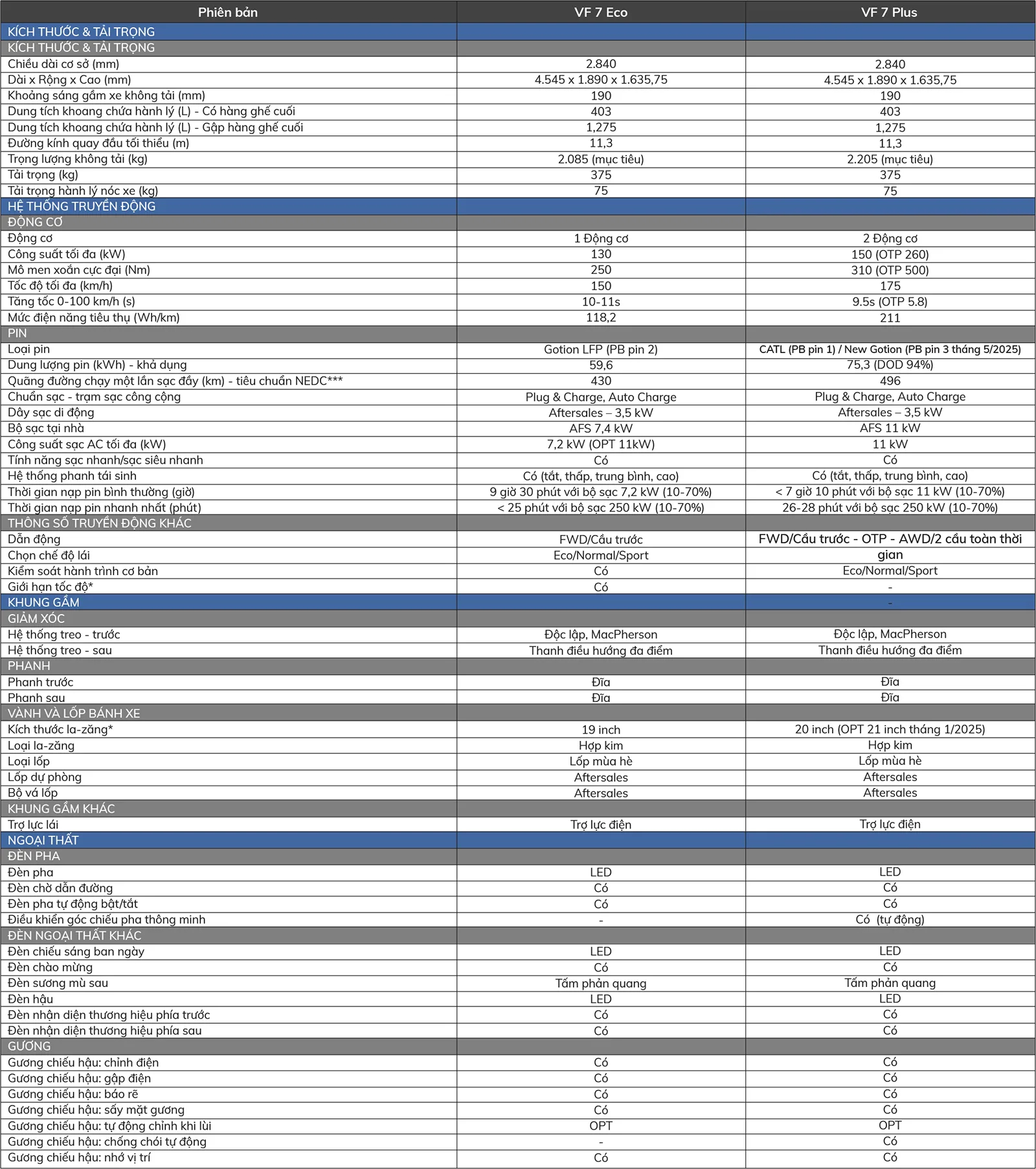 | Thông số vận hành VF 7 | VF7 Eco | VF7 Plus |
