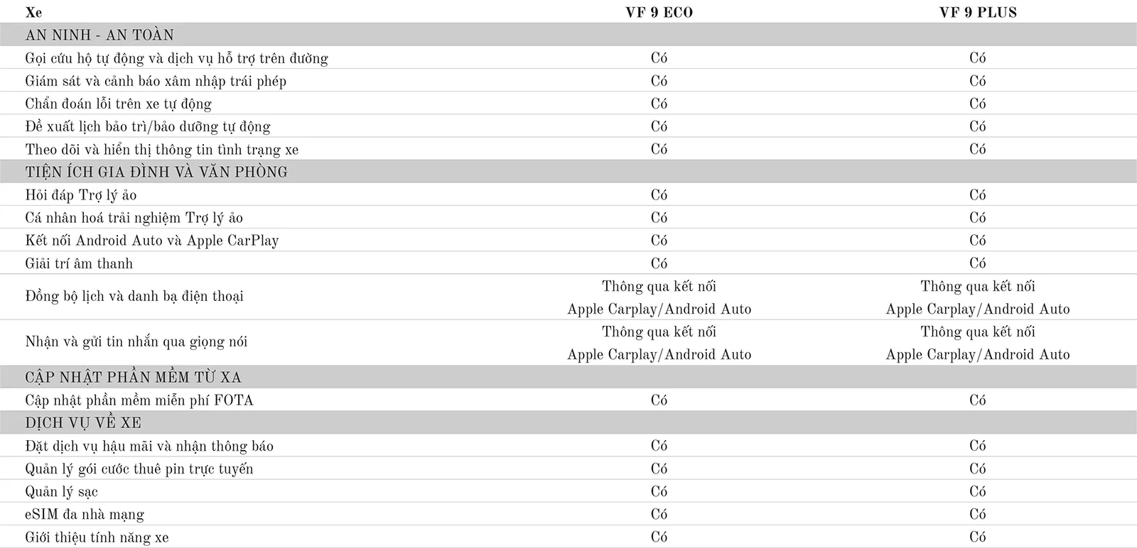Nhờ các trang bị này, VinFast VF 9 không chỉ đảm bảo an toàn chủ động và bị động tối ưu mà còn nâng cao trải nghiệm lái xe thông minh, tiện nghi cho người dùng trên mọi hành trình.