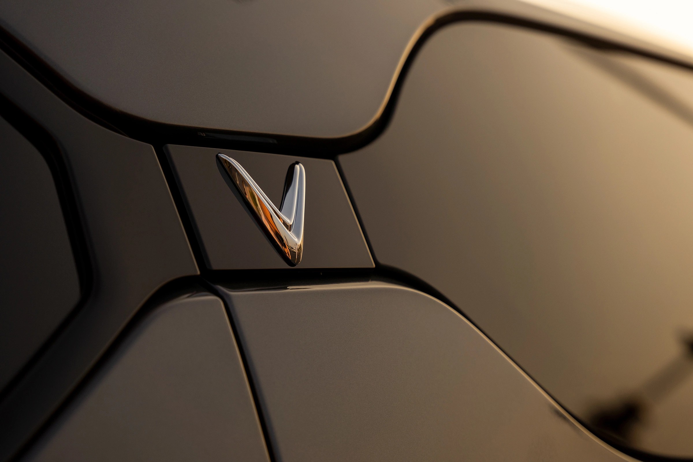 Đuôi xe nổi bật với dải đèn LED kéo dài ôm trọn logo chữ “V”, tạo sự liên kết chặt chẽ giữa đầu và đuôi xe, đồng thời khẳng định dấu ấn thương hiệu Việt. Thiết kế vuông vắn, vững chắc, kết hợp cánh lướt gió, đèn phanh trên cao và các chi tiết như vây cá mập, nẹp chrome, tăng tính thẩm mỹ và khí động học.